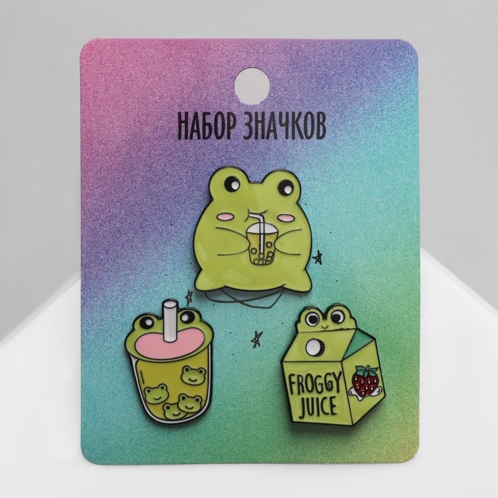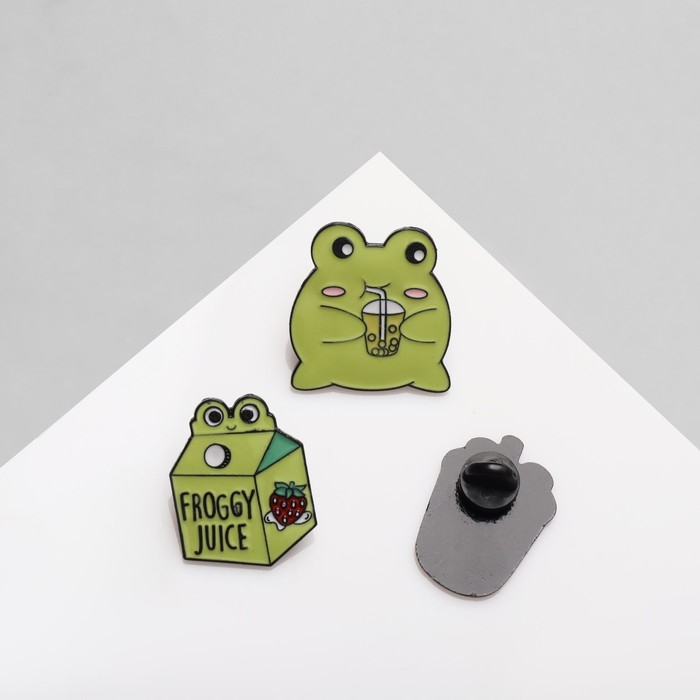 Набор значков (3 шт.) «Лягушачьи напитки», цвет зелёный в чёрном металле