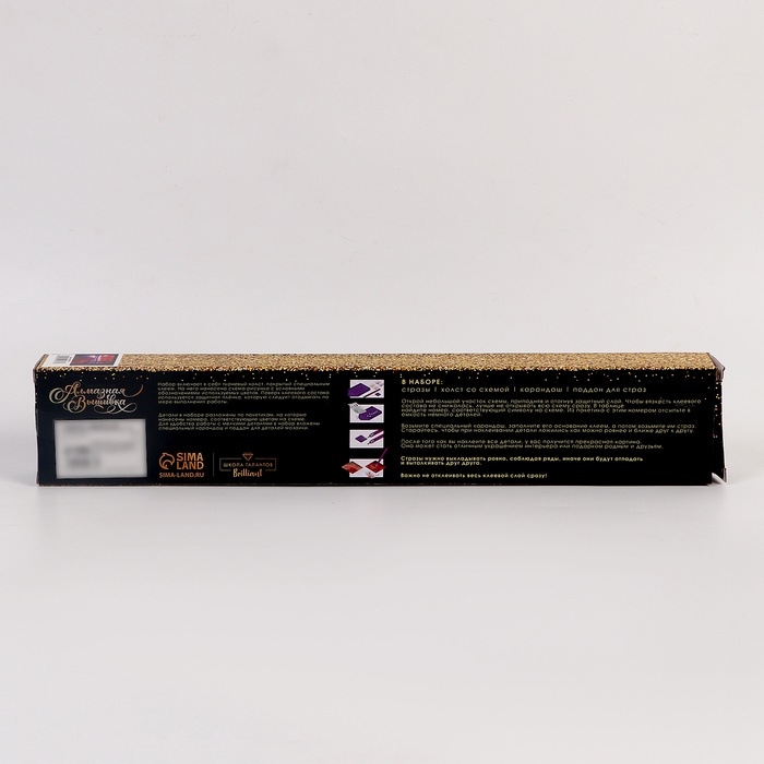 Вам предстоит разложить кристаллики карандашом по пронумерованной схеме. Холст с клеевым покрытием будет надёжно удерживать стразы.
