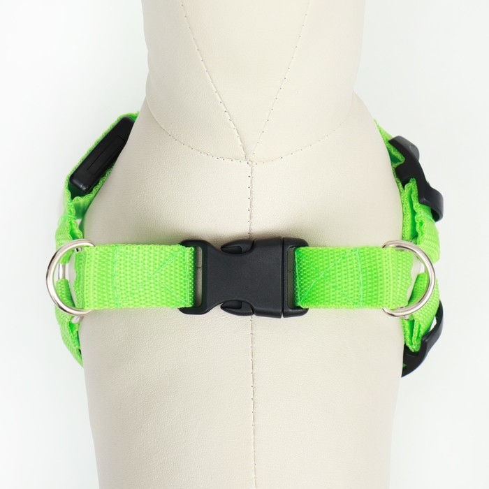 Шлейка светящаяся размер S, стропа 2,5 см, ОГ 32-40 см, 3 режима свечения зелёная