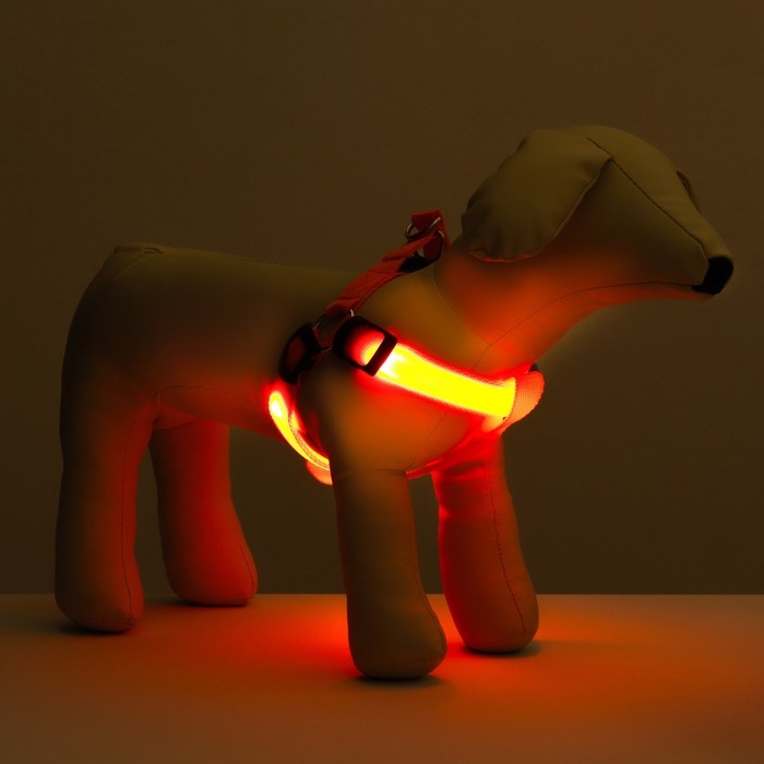 Шлейка светящаяся размер L, стропа 2,5 см, ОГ 43-60 см, 3 режима свечения оранжевая 97722
