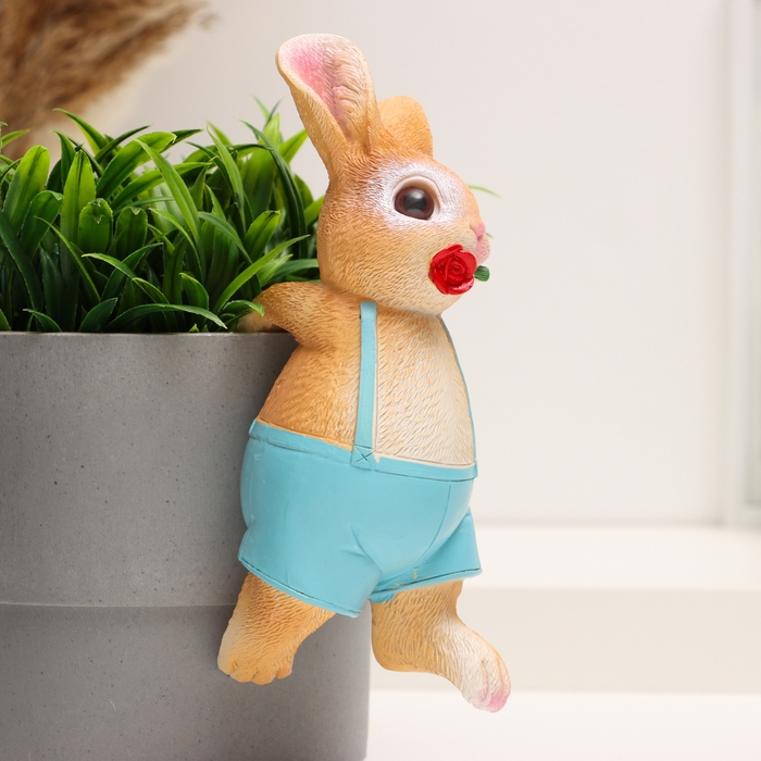 Декор на кашпо "Зайчишка с розой" 17х7х7см