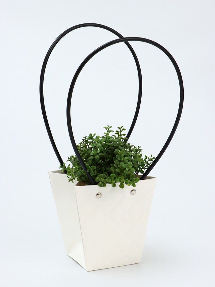 Сумка для цветов тиснение Белая влагостойкая, 12x12-8x8-12.5 см