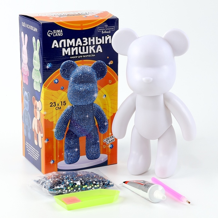 Набор позволит ребёнку смастерить сверкающую игрушку. Малыш с интересом создаст шедевр из ярких страз. Ему понравится не только результат работы, но и сам творческий процесс. Увлекательное занятие поможет развить мелкую моторику рук, усидчивость, внимательность и аккуратность.
