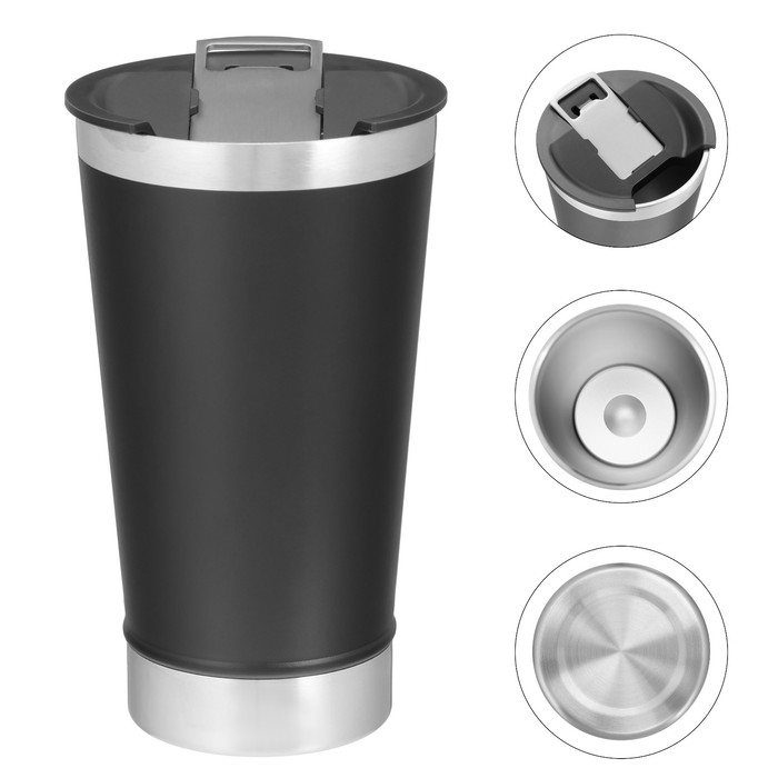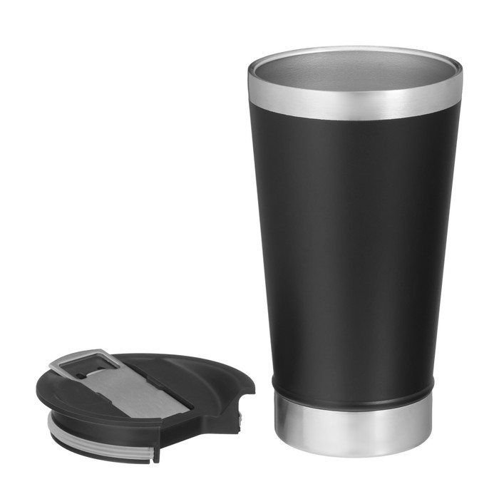Термостакан пивной, 600 мл, Beer, открывашка, черный