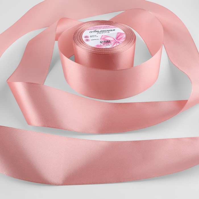Лента атласная, 25 мм × 23 ± 1 м, цвет розовое золото №146