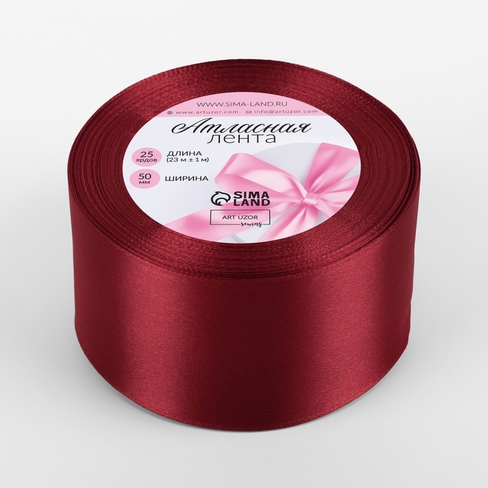 Лента атласная, 50 мм × 23 ± 1 м, цвет бордовый №48