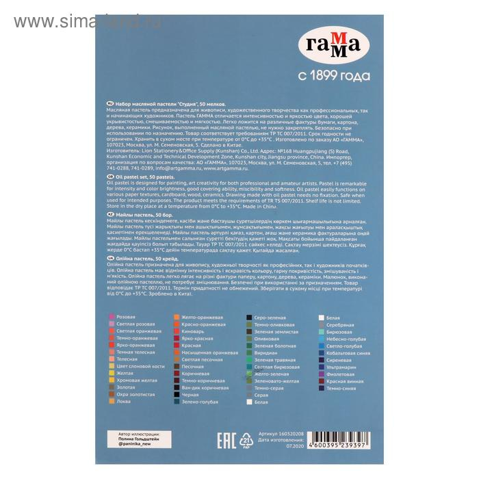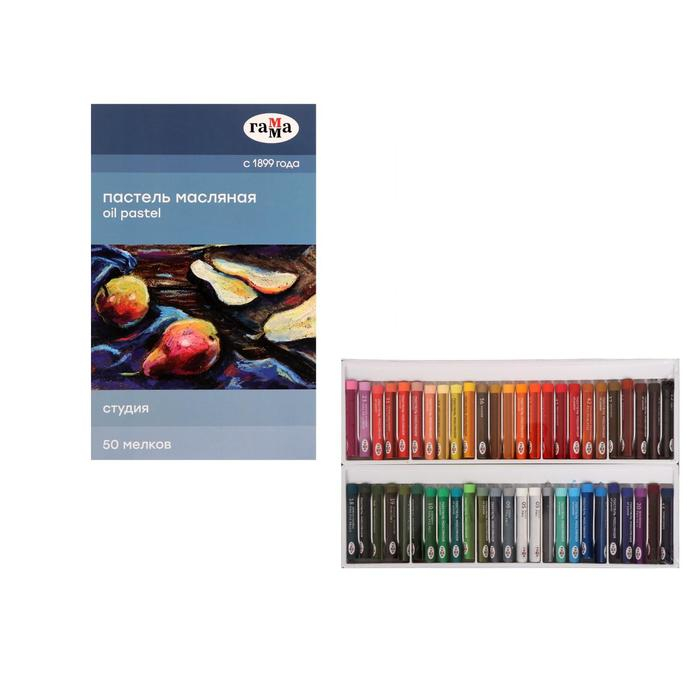Пастель масляная, набор 50 цветов, Гамма "Студия", d-8мм, l-65мм, в картонной коробке