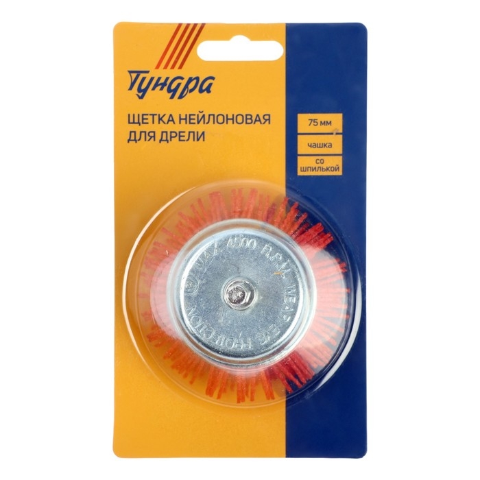 Щетка нейлоновая для дрели ТУНДРА, со шпилькой, "чашка", 75 мм
