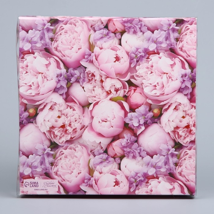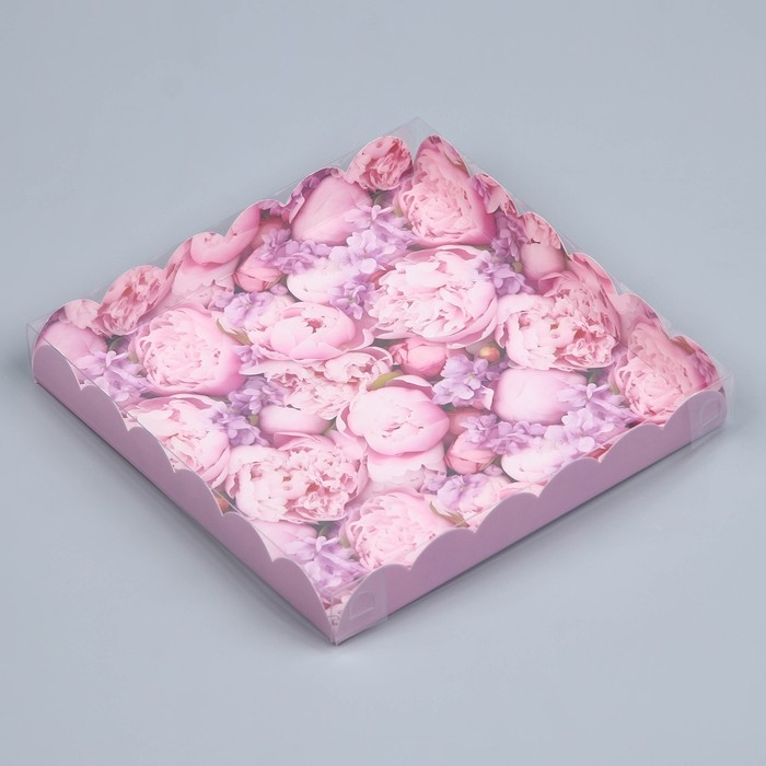Коробка для печенья, кондитерская упаковка с PVC крышкой, «Цвети от счастья», 21 х 21 х 3 см