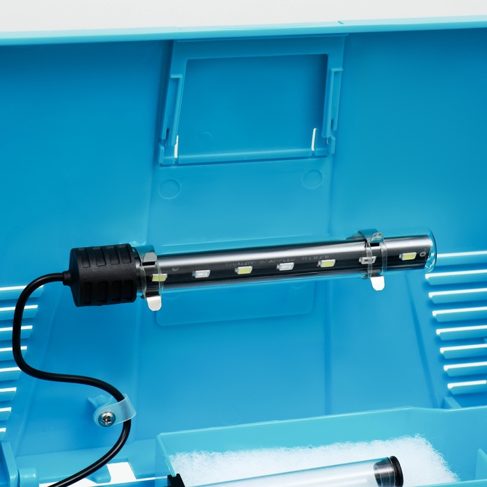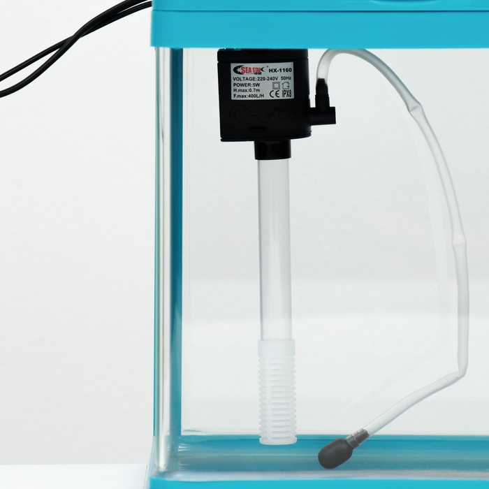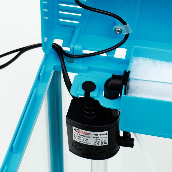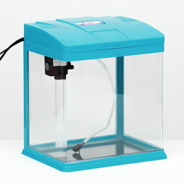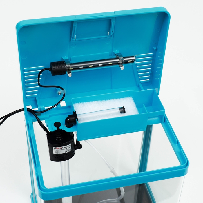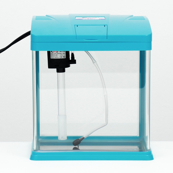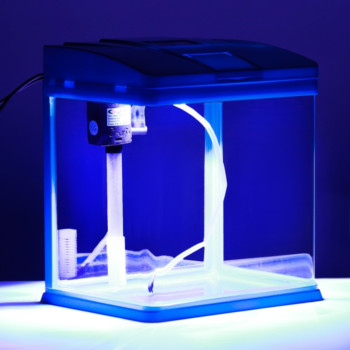Аквариум 12 литров голубого цвета, в комплекте: LED-лампа двухцветная, фильтр 200 л/ч.