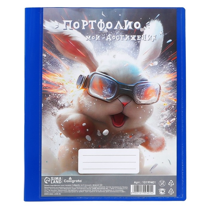 Папка-портфолио А4, Calligrata "Переменка", пластиковая, на 4 кольцах, для школьника, без вкладышей