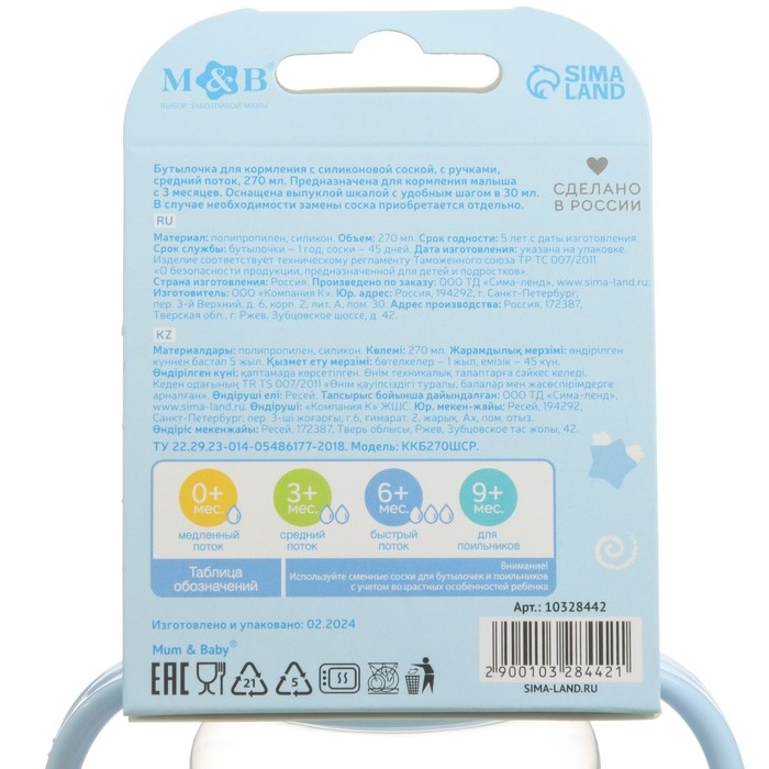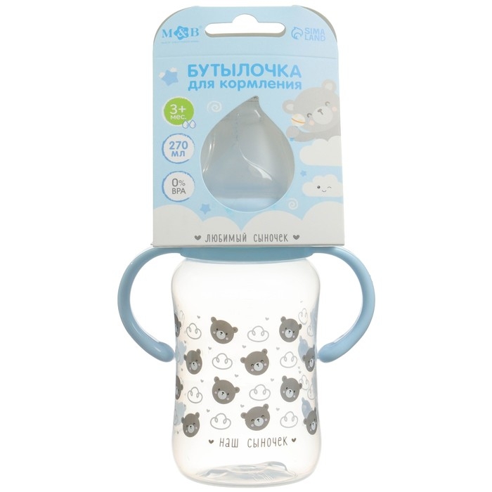Бутылочка для кормления M&B «Наш сыночек», широкое горло, средний поток, от 3 мес., 270 мл.