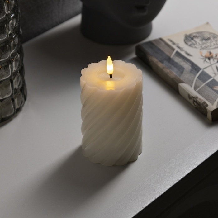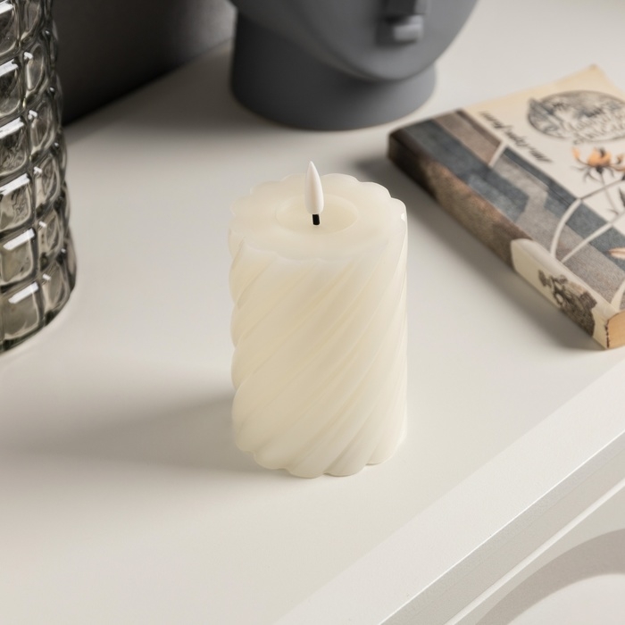 Светодиодная свеча витая белая, 7.5 × 12.5 × 7.5 см, пластик, воск, батарейки АААх2 (не в комплекте), свечение тёплое белое