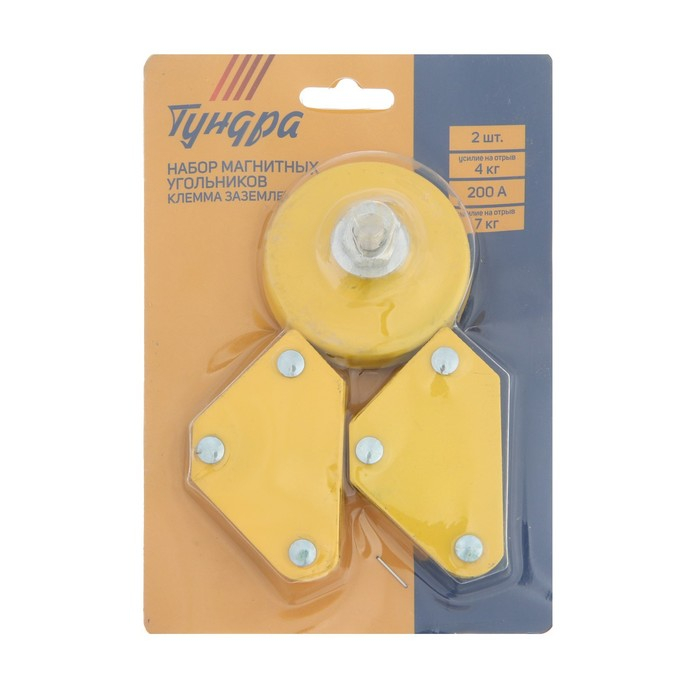 Набор магнитных угольников для сварки ТУНДРА, 45,90,135°, 4 кг, 2 шт. + клемма, 200 А, 7 кг