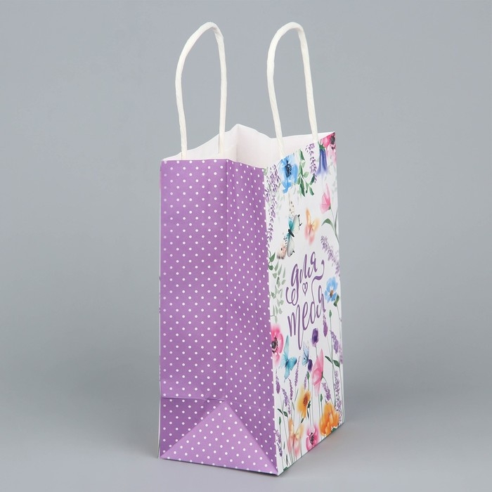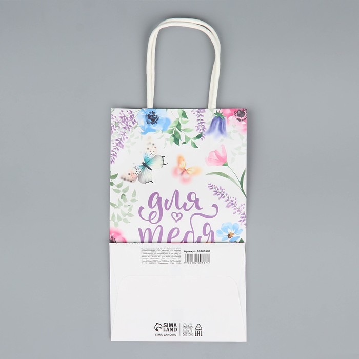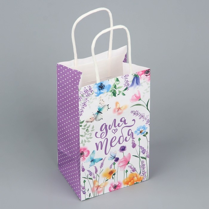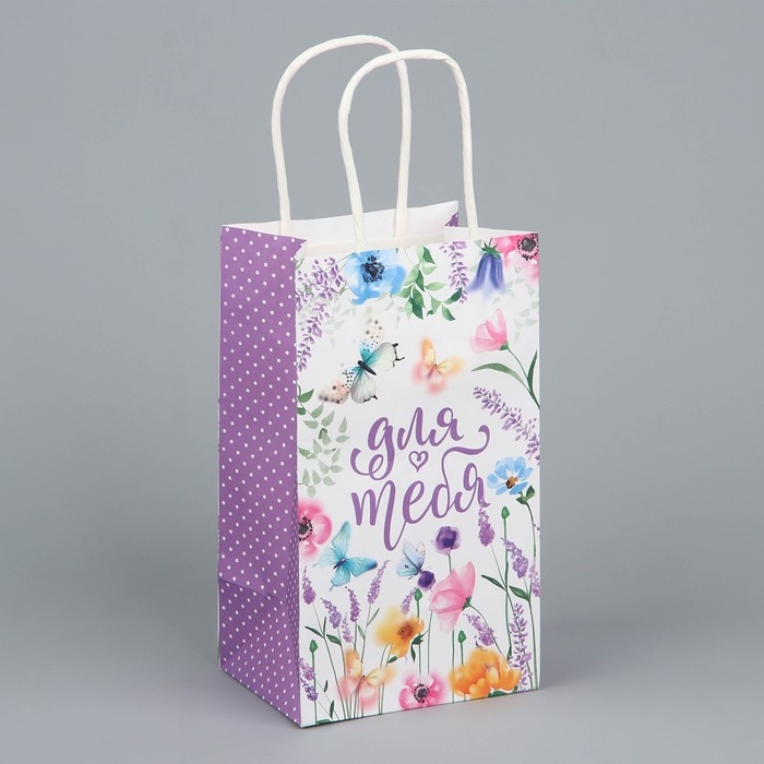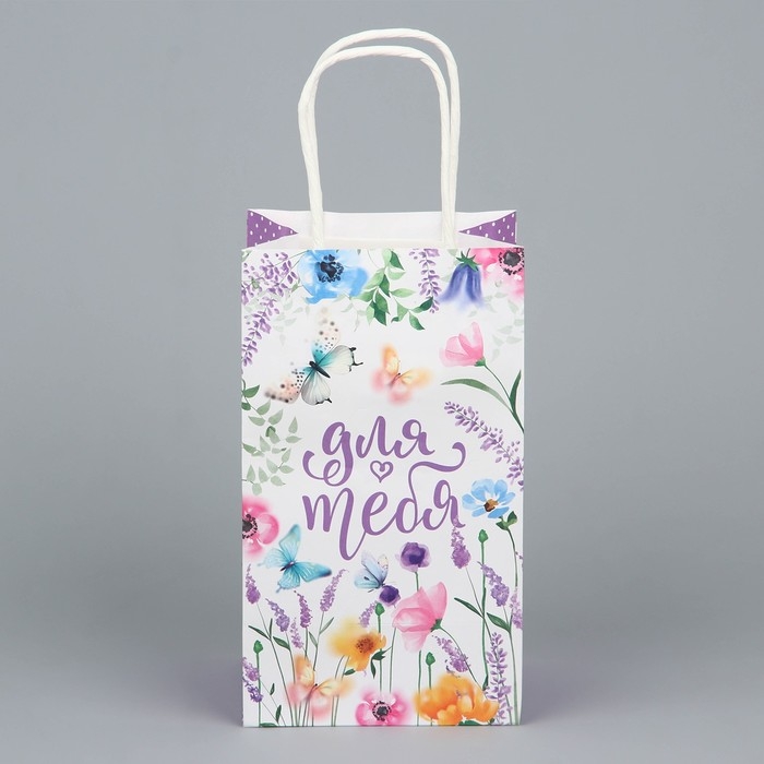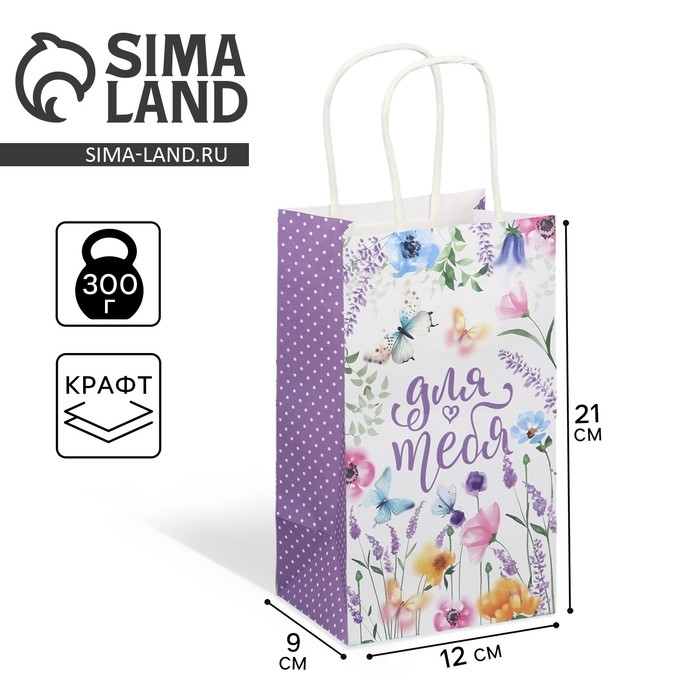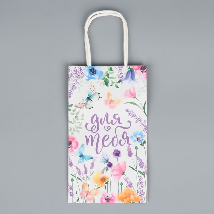 Пакет подарочный крафтовый, упаковка, «Для тебя», цветы, 12 х 21 х 9 см