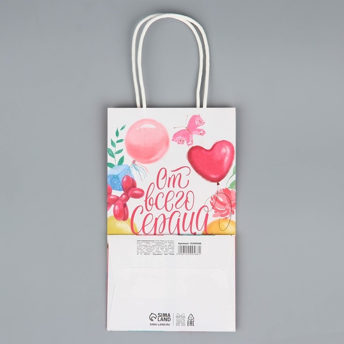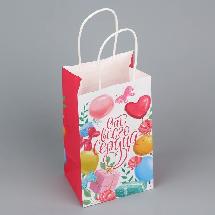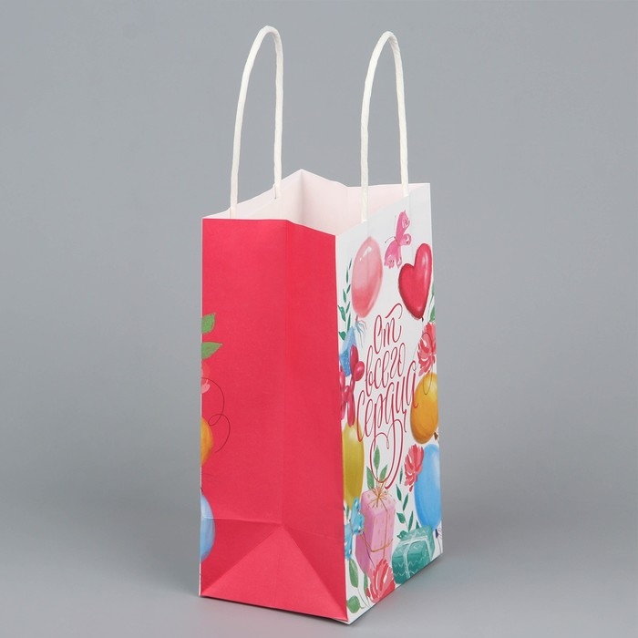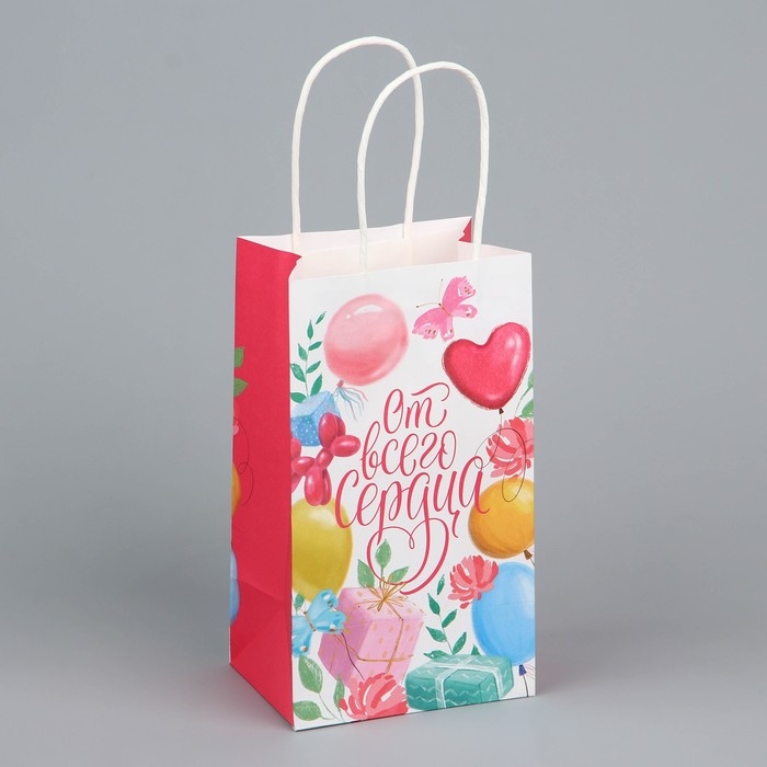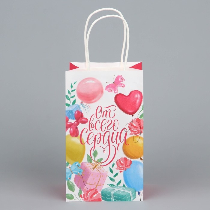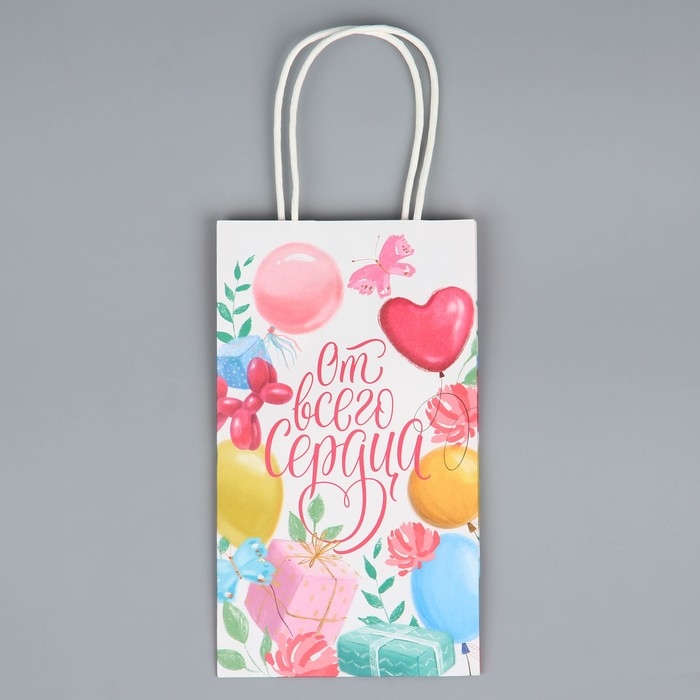 Пакет подарочный крафтовый, упаковка, «От всего сердца», шары, 12 х 21 х 9 см