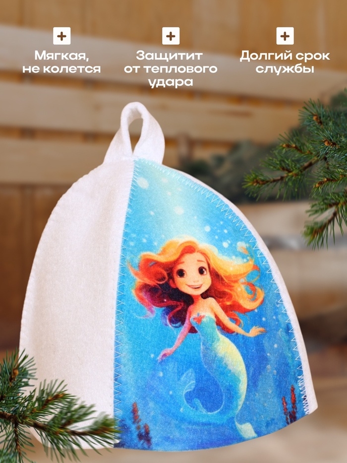 Шапка для бани с детским принтом "Русалка"