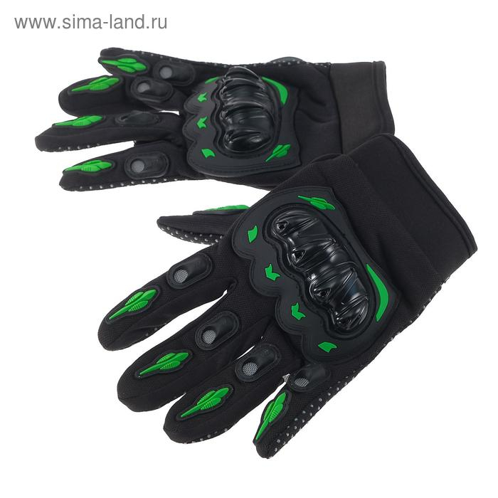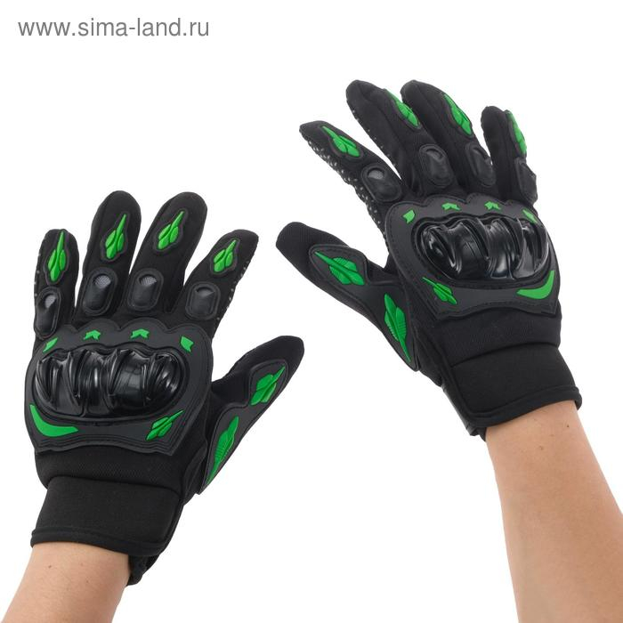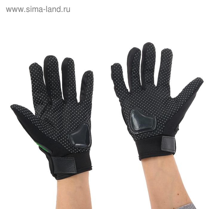 Перчатки мотоциклетные с защитными вставками, пара, размер XL, черно-зеленый
