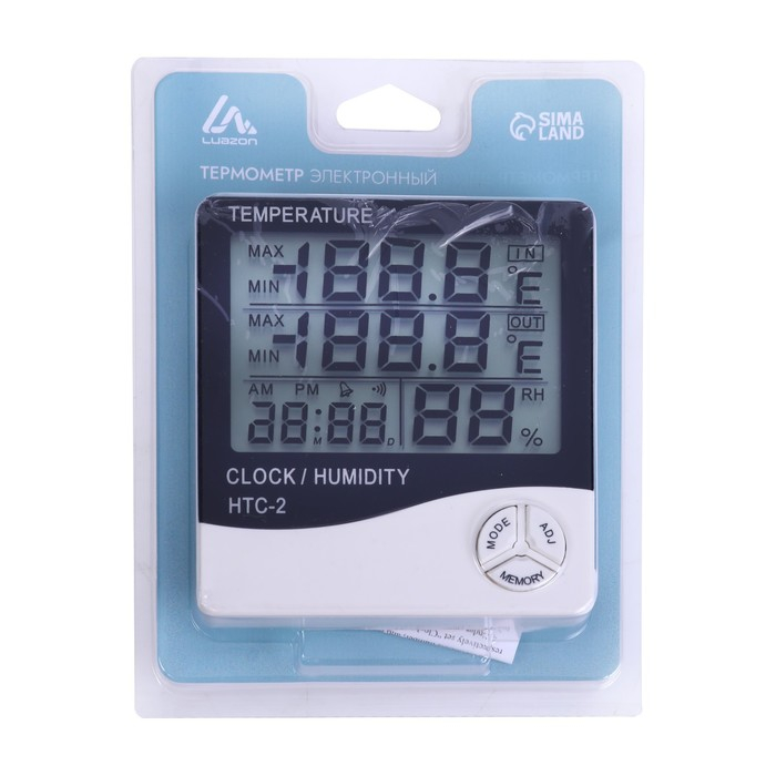 Термометр Luazon LTR-16, электронный, 2 датчика температуры, датчик влажности, белый