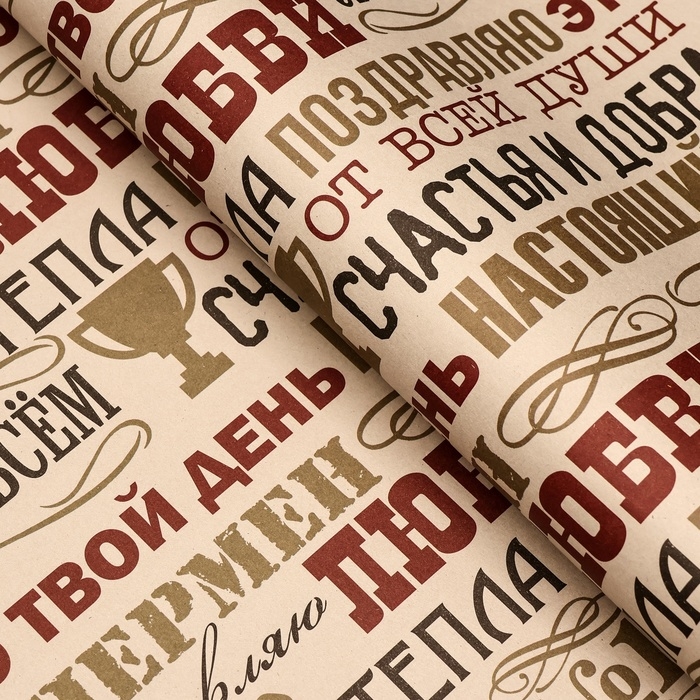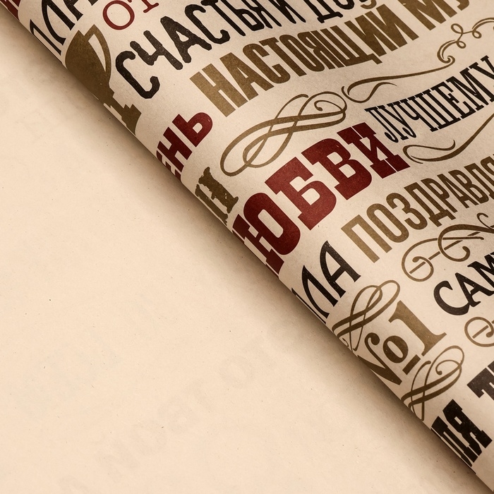 Бумага упаковочная, крафтовая "Мужчине", 70 х 100 см, 1 лист