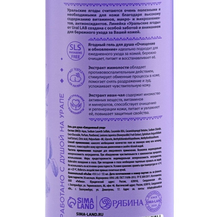 Гель для душа женский с экстрактом жимолости и иван-чая, 410 мл, URAL LAB