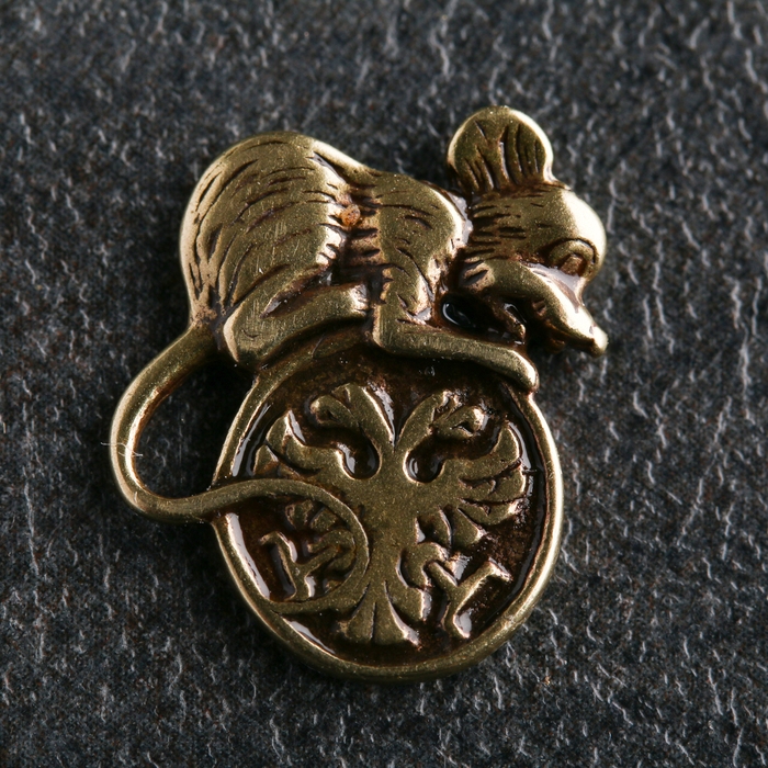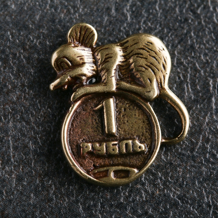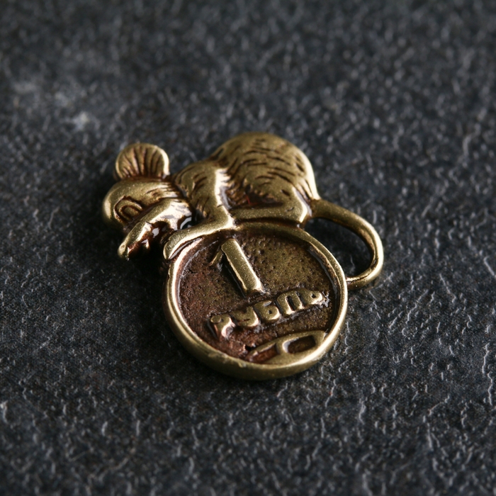 Сувенир "Мышь с монетой 1 рубль", латунь