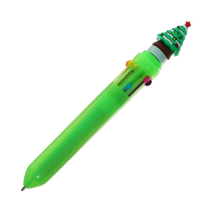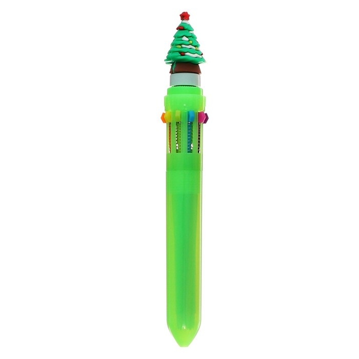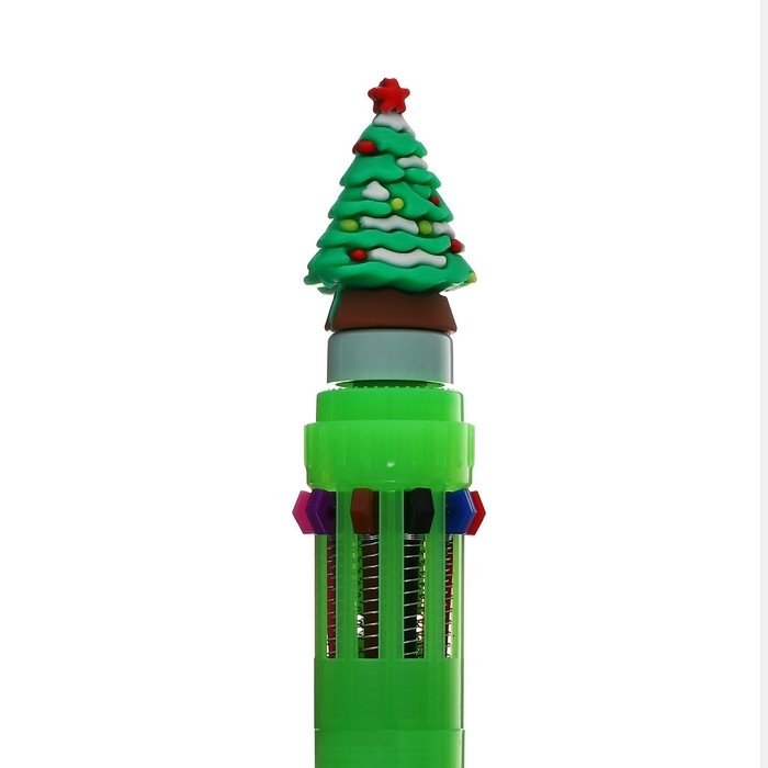 Ручка шариковая новый год-спинер "Елка", 10-ти цветная, автоматическая, МИКС