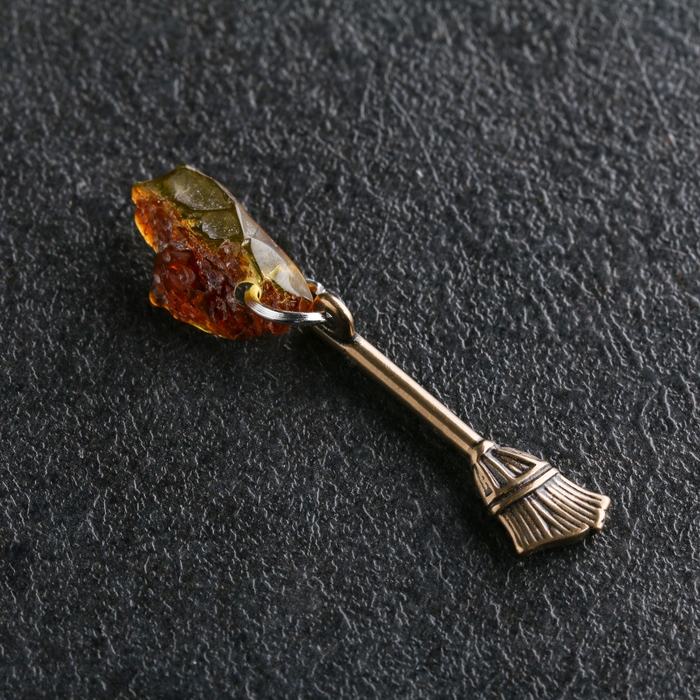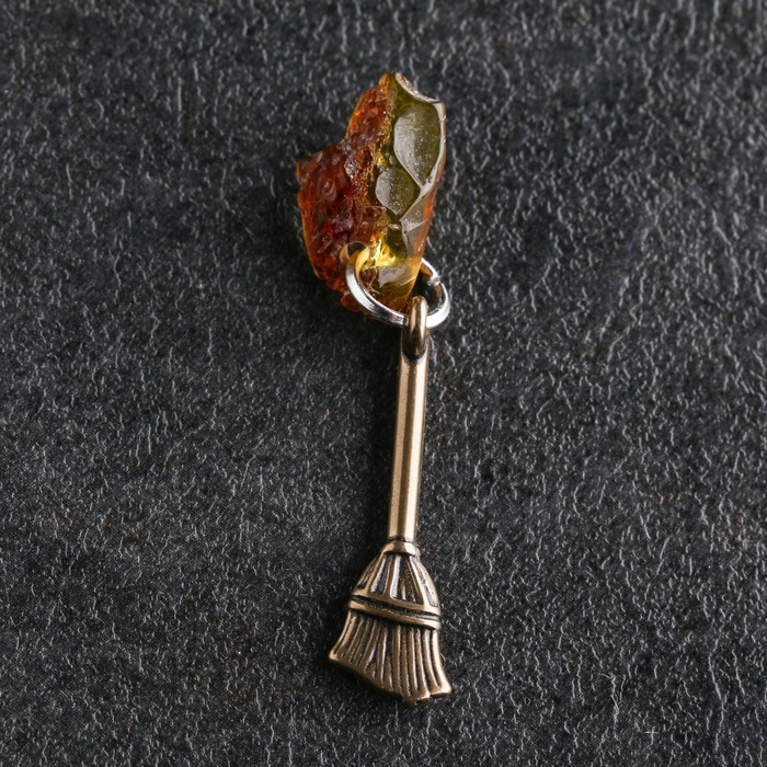 Брелок талисман "Метла денежная", латунь, янтарь