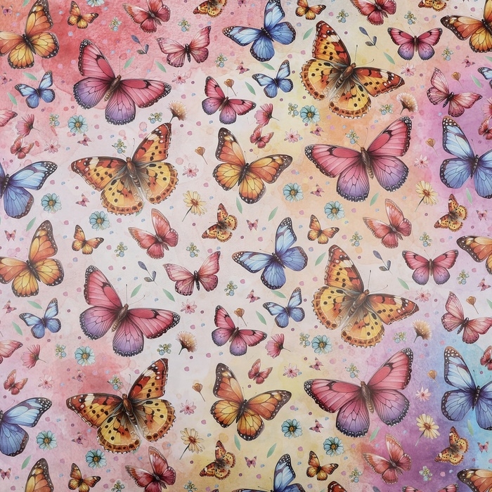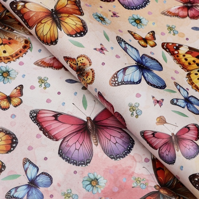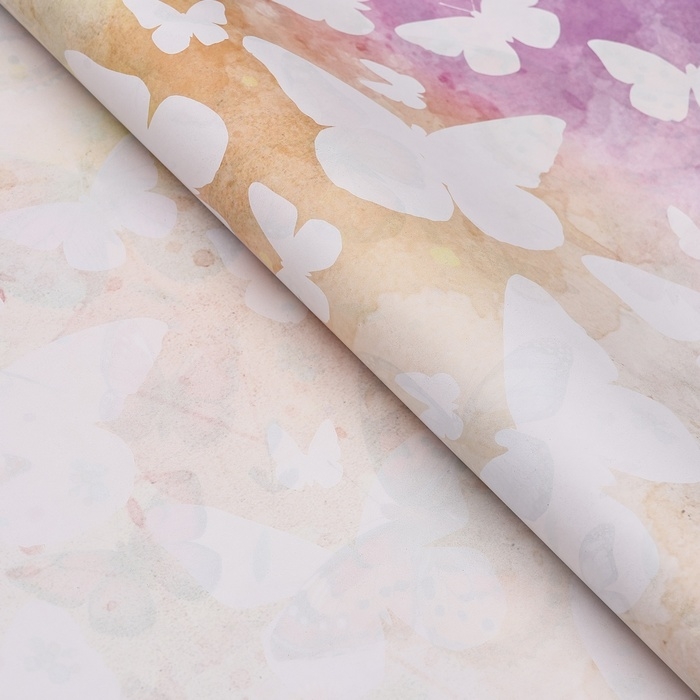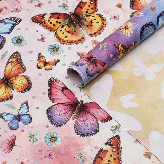 Бумага упаковочная глянцевая двусторонняя "Яркие бабочки", 100 х 70 см
