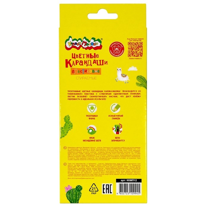 Пластиковые стираемые карандаши "Каляка-Маляка"® изготовлены из высококачественного пластика, они идеально стираются ластиком на корпусе карандаша, позволяя быстро устранить недочеты и помарки!