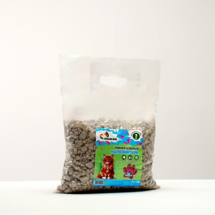 Наполнитель минеральный впитывающий "Пижон" цеолит для длинношерстных фр 5-15 мм 3 кг впит 5 л