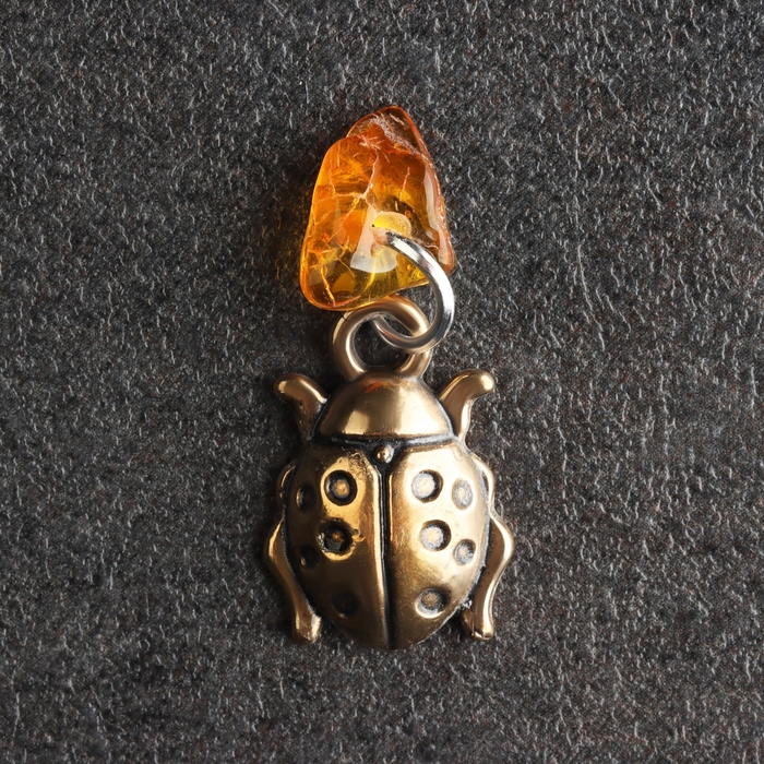 Брелок талисман "Божья Коровка", латунь, янтарь