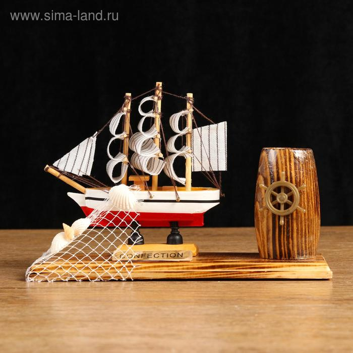 Корабль сувенирный на подставке, с карандашницей 22*7*15см