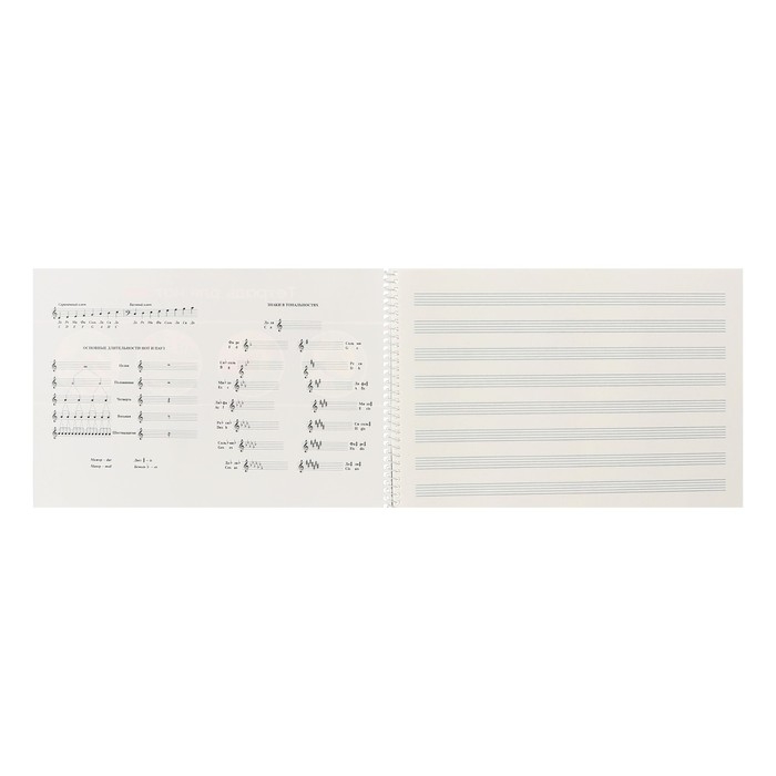 Тетрадь для нот А4 24 листа, на гребне "В стране нот", обложка мелованный картон, справочная информация, блок 80 г/м2