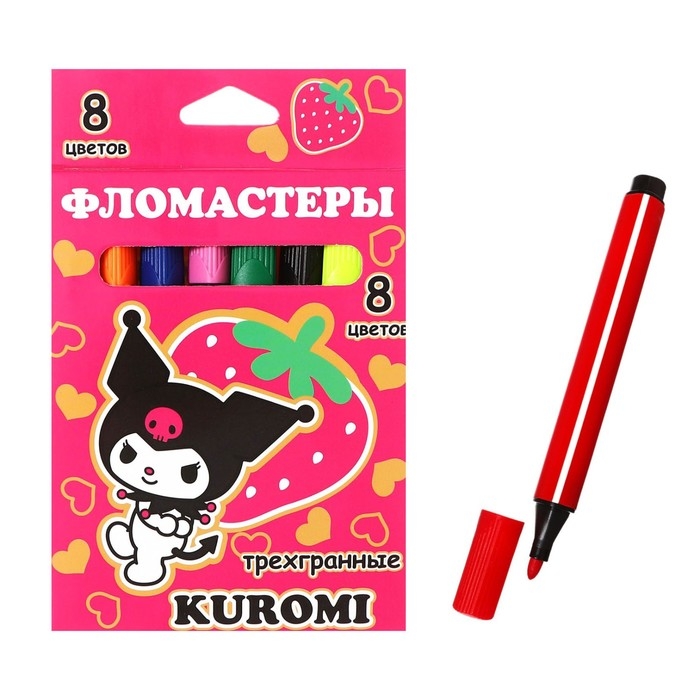 Фломастеры 8 цветов Kuromi, вентилируемый колпачок, европодвес