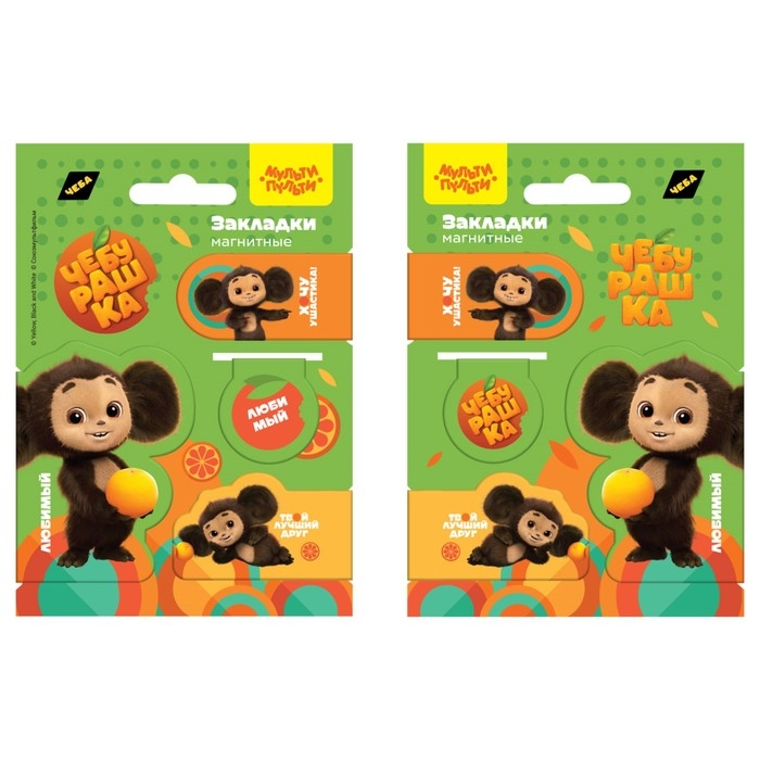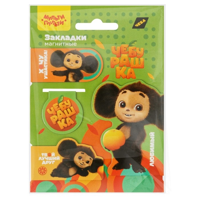 Магнитные закладки «Мульти-Пульти» серии «Чебурашка» позволят вернуться к чтению книги в любой момент. С такими аксессуарами захочется читать чаще. В набор входят четыре фигурные закладки с любимым героем, которые помогут поддержать интерес ребёнка к литературе. Размер подложки — 13*9,5 см.Обычные картонные закладки выпадают из книги при наклоне или перелистывании, чего не скажешь о магнитных, которые надёжно крепятся к страницам. Износостойкие изделия сделаны из картона и винила.Канцелярская продукция серии «Чебурашка», произведенная под брендом «Мульти-Пульти», является 100 % лицензионной и оригинальной. Качественные товары непременно понравятся детям и станут приятным и необычным подарком.