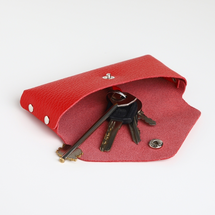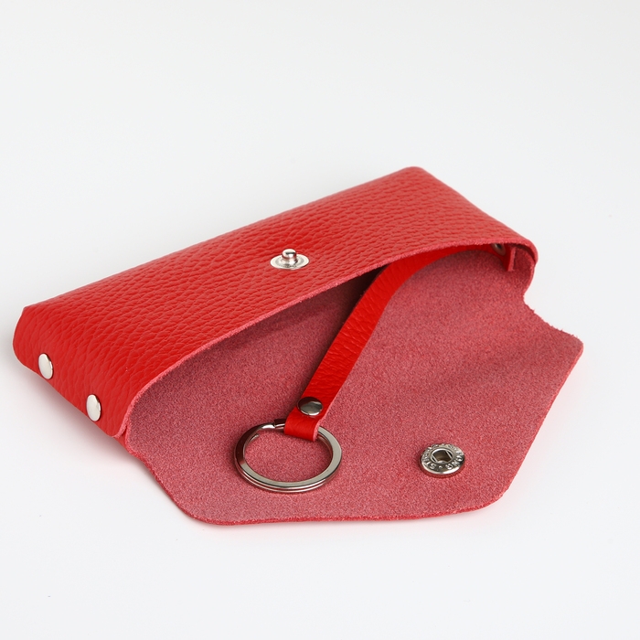 Ключница карманная на кнопке, TEXTURA, длина 15 см, кольцо, цвет красный