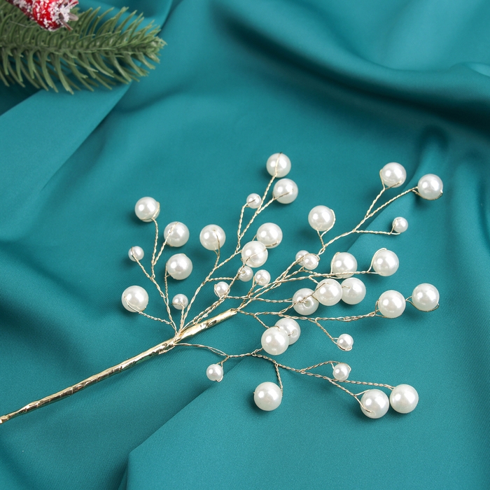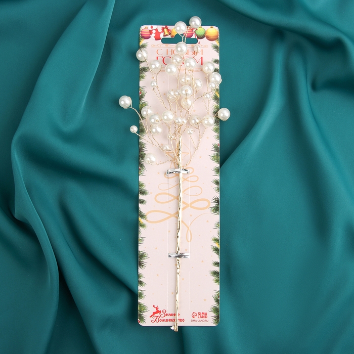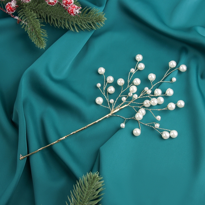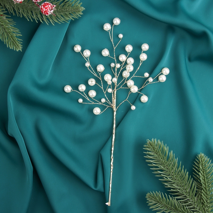 Новогодняя ветка декоративная «Зимнее волшебство. Хрустальная сказка», пластик, 29 см, веточка с жемчугом