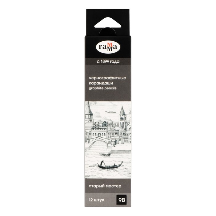 Чернографитные карандаши ГАММА серии «Старый мастер» твёрдостью 9B предназначены для рисования, скетчинга и черчения на бумаге и картоне. Диаметр грифеля – 3,9 мм. Карандаши «Старый мастер» выпускаются в 20 различных степенях твердости: от 8H до 10B, поэтому идеально подойдут как для художников, иллюстраторов, так и для архитекторов и инженеров. Карандаши упакованы в картонную коробку по 12 штук.
