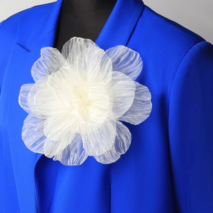 Брошь текстильная «Цветок» объемный, невесомый, цвет белый