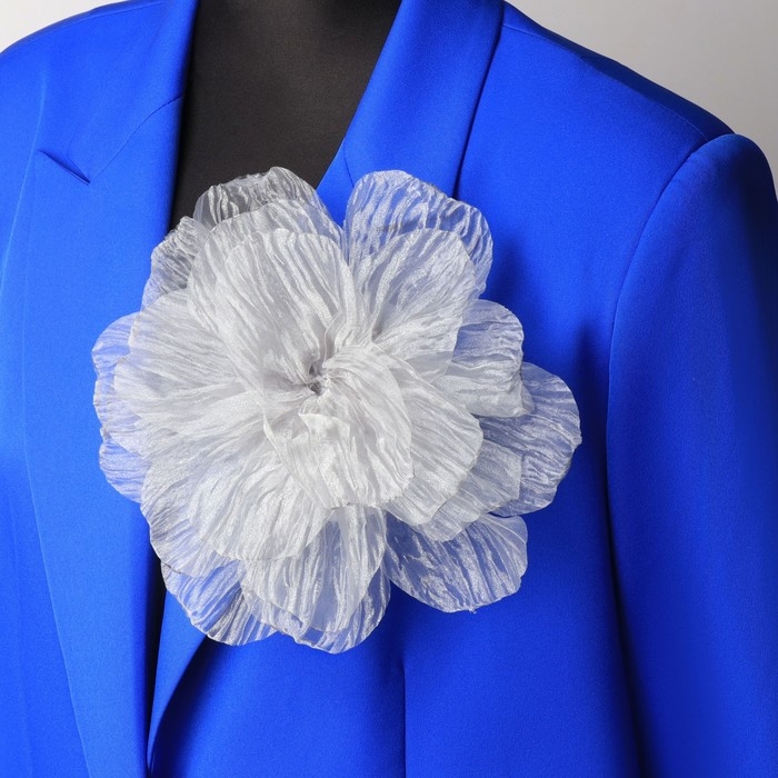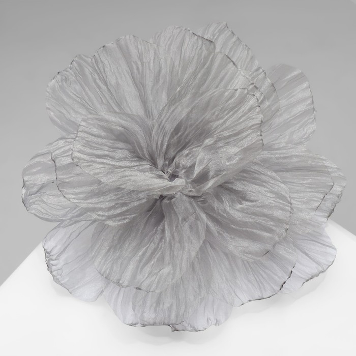 Брошь текстильная «Цветок» объемный, невесомый, цвет серый