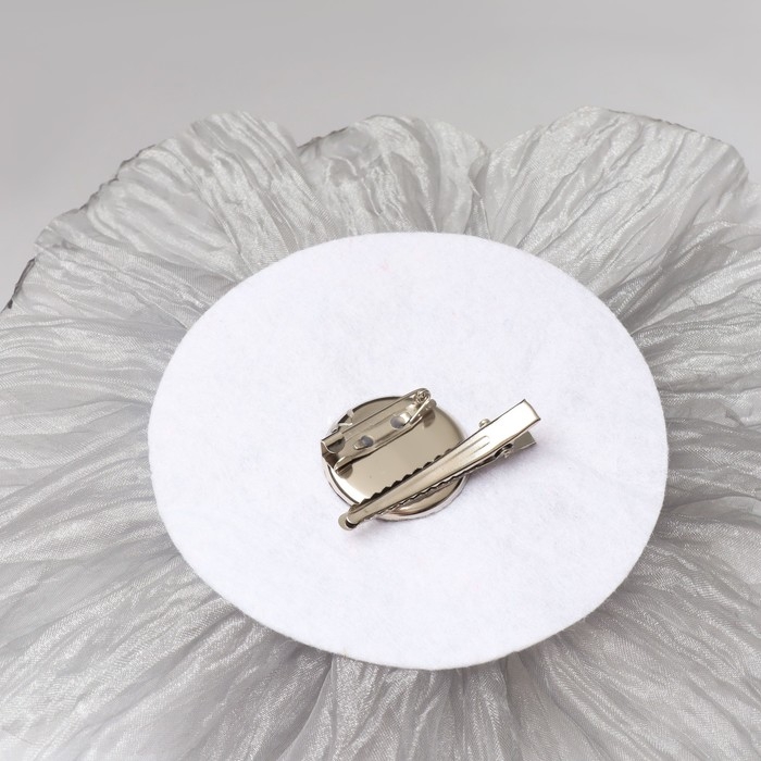 Брошь-заколка текстильная «Цветок» пион, цвет серый