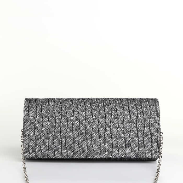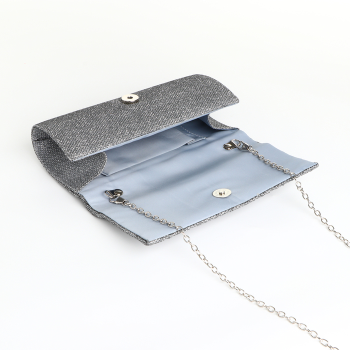 Сумка-клатч на магните, длинная цепь, цвет серебристый