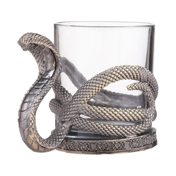 Стакан для виски "Кобра" - это изысканный и стильный аксессуар, который станет прекрасным дополнением к вашей коллекции посуды. Имеет классическую форму, которая идеально подходит для подачи любого крепкого напитка. Уникальная форма и дизайн ручки, в виде силуэта змеи, придает особую магию и элегантность. Змея символизирует силу, мудрость и хитрость. В разных культурах может олицетворять бессмертие, перерождение и исцеление. Объем бокала составляет 300 мл, что является оптимальным для подачи виски. Такой объем позволяет насладиться напитком в полной мере. Размеры также продуманы до мелочей: высота - 9.6 см, ширина бокала с ручкой – 12 см, верхний диаметр фужера - 7.9 см, нижний диаметр - 8.2 см, обеспечивают удобство использования.