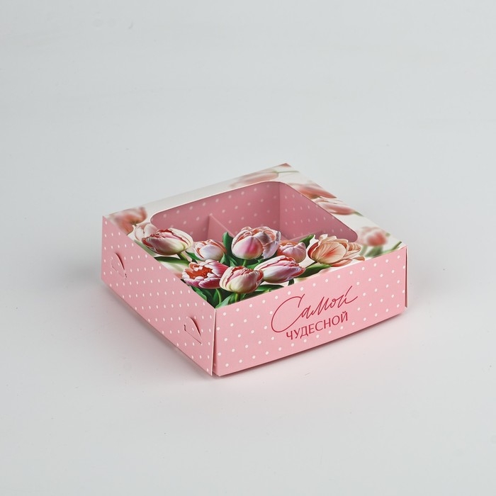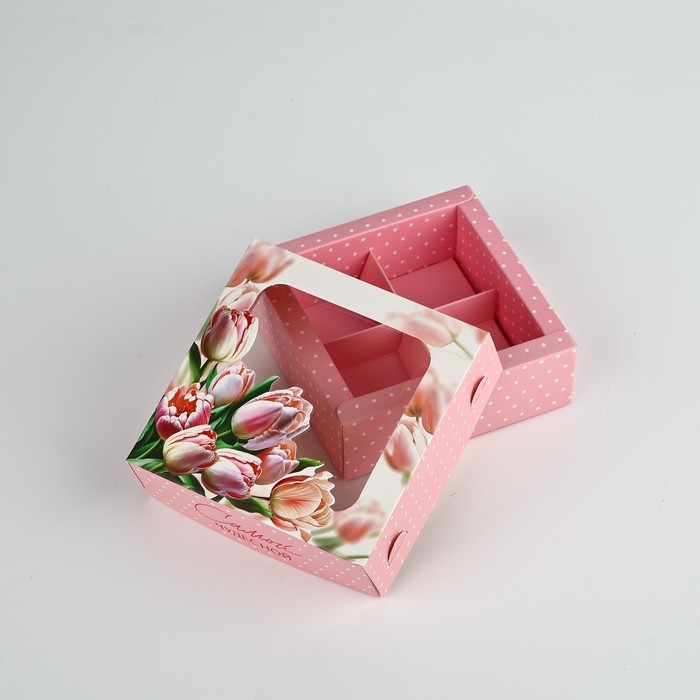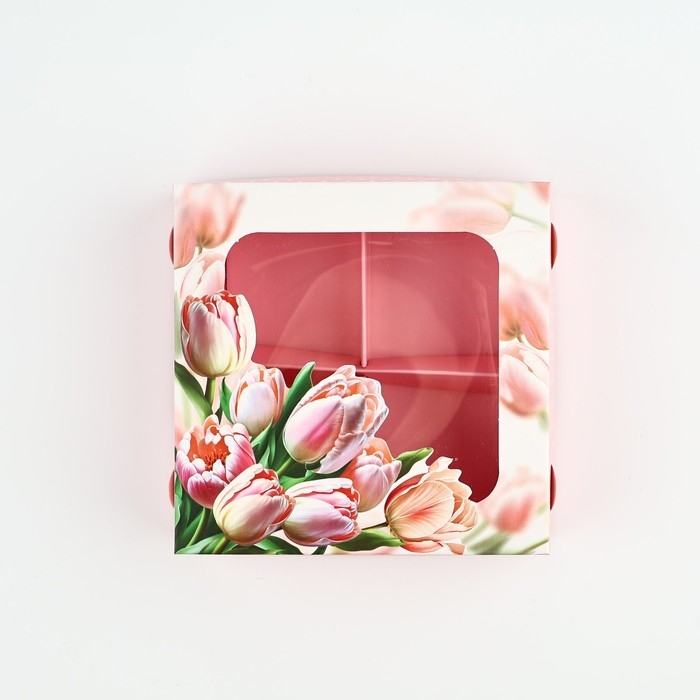 Коробка для конфет «Нежные тюльпаны», 10.5 х 10.5 х 3.5 см