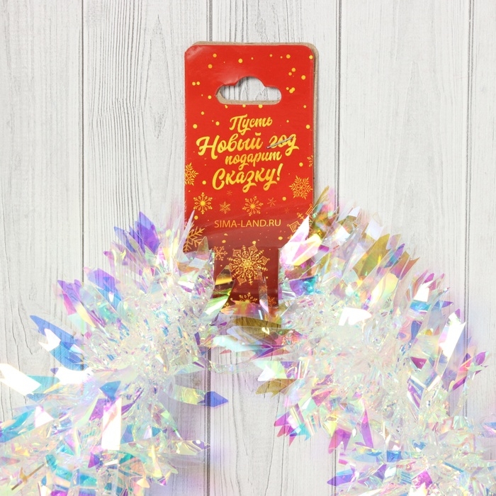 Мишура новогодняя «Зимнее волшебство. Праздничный отблеск», острые края, d-7 см, 200 см, перламутровый прозрачный