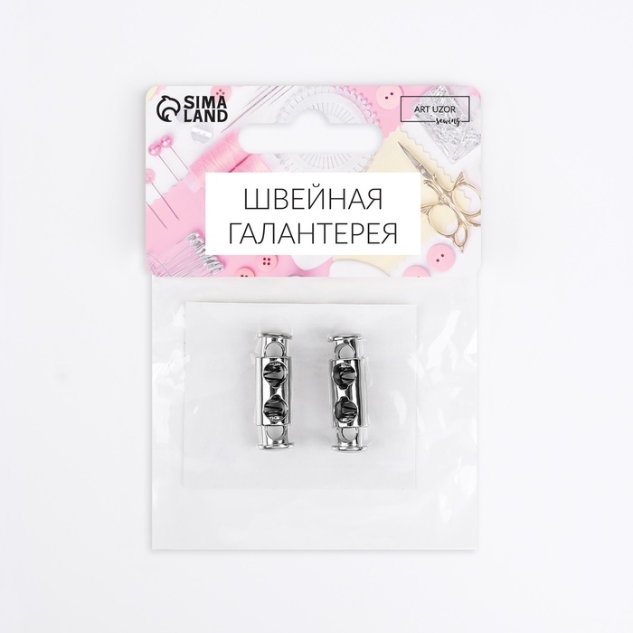 Фиксатор для шнура, двойной, d = 4 мм, 8 × 26 мм, 2 шт, цвет серебряный