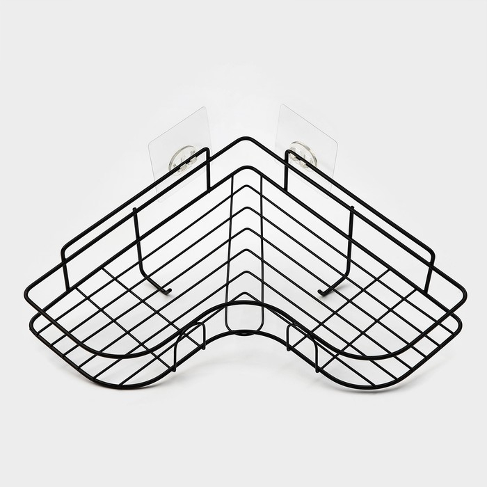 Полка угловая Доляна, 2 крючка, 26×26×10 см, цвет чёрный