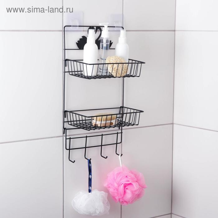 Полка 2-х ярусная Доляна, 4 крючка, 47×30×14 см, цвет чёрный
