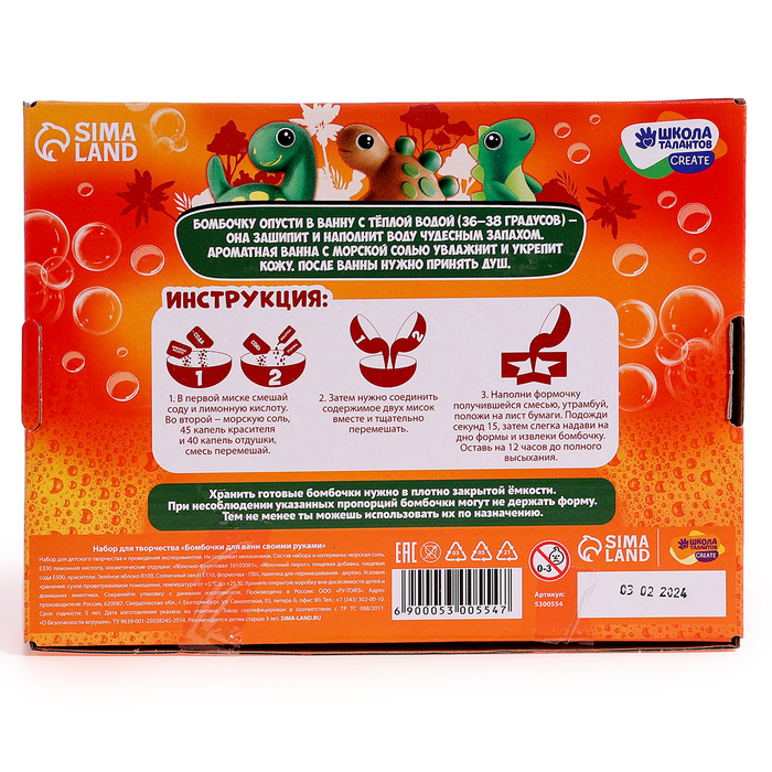 Набор для творчества. Бомбочки для ванн своими руками «Весёлый динозаврик»